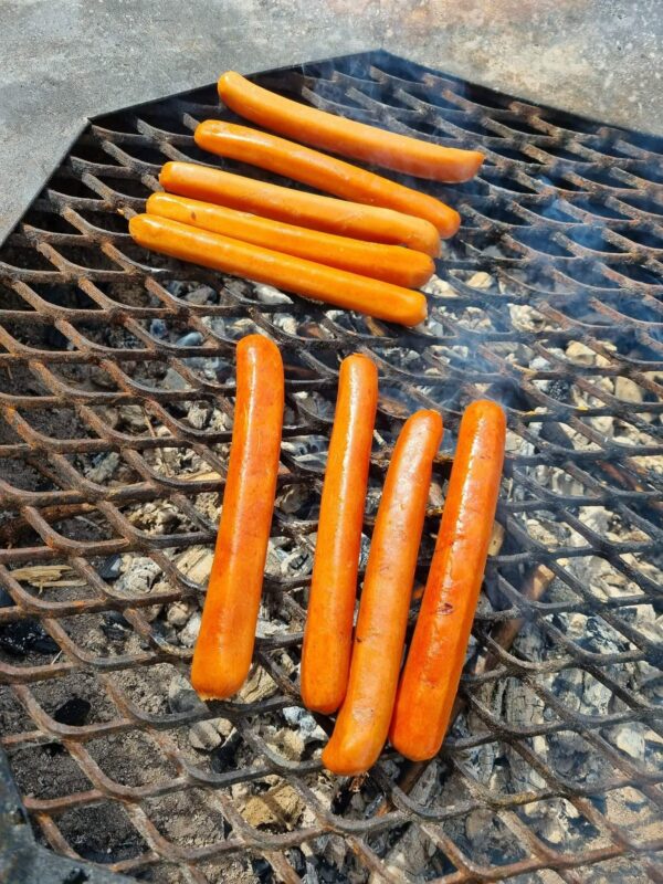 Vi bjuder på grillad korv, kycklingkorv och vegankorv vid första pumpviken.